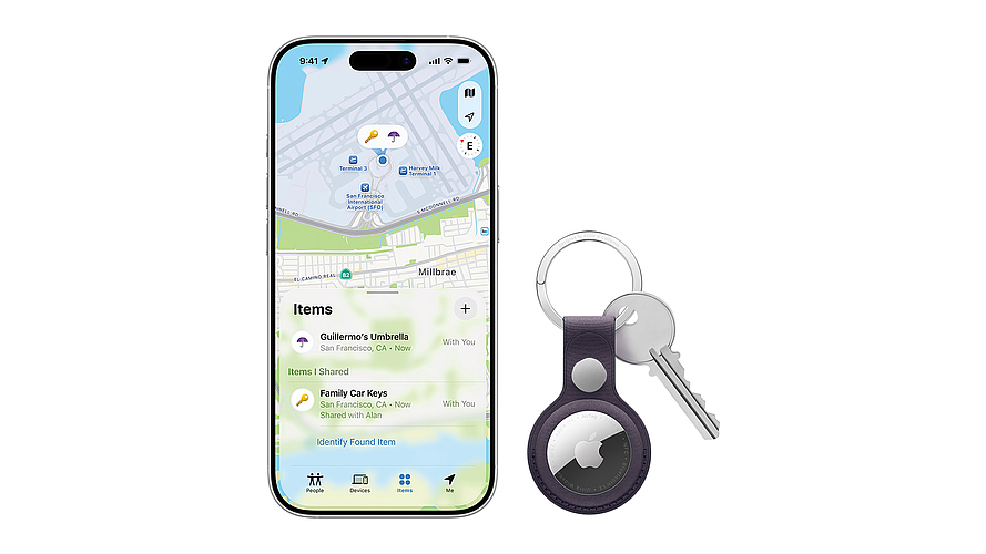 Teilen Sie ein AirTag mit bis zu 5 Personen. So können gemeinsam genutzte Gegenstände wie Regenschirme, Fahrräder oder Autoschlüssel von Familie, Freundinnen und Freunden immer im Blick behalten werden.